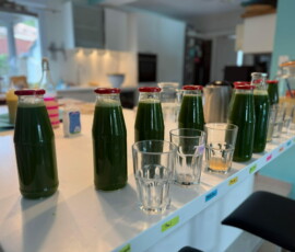 Pour une cure de nettoyage, rien n’est mieux indiqué que la cure de jus verts. Pendant que le corps n’est pas occupé à digérer des aliments et les métaboliser, il peut ainsi se réparer et se régénérer. La cure aux jus verts apporte une grande quantité de nutriments qui accélérera le nettoyage et l’élimination des toxines. Des jus fabriqués exclusivement à partir de germinations, de jeunes pousses et d’herbe de blé peuvent être trop désintoxicants pour commencer. Il est conseillé de diluer ces jus avec du jus de céleri et de concombre. Allez-y selon votre tolérance et votre progression. Pour une santé optimale, il est recommandé de faire une cure de jus une journée par semaine.